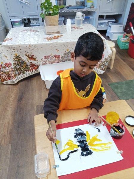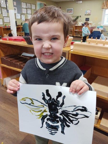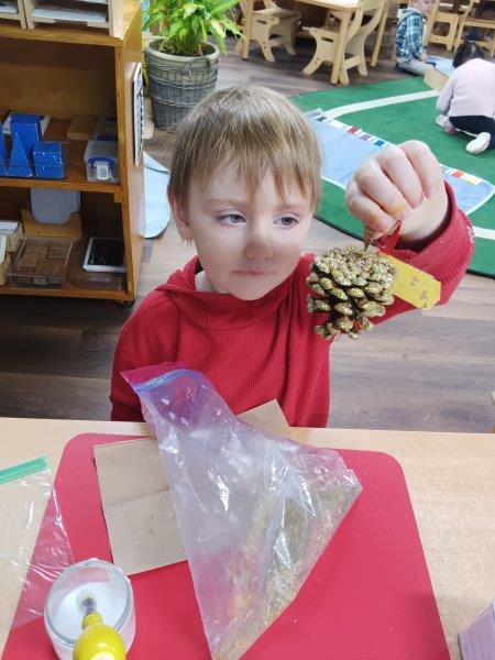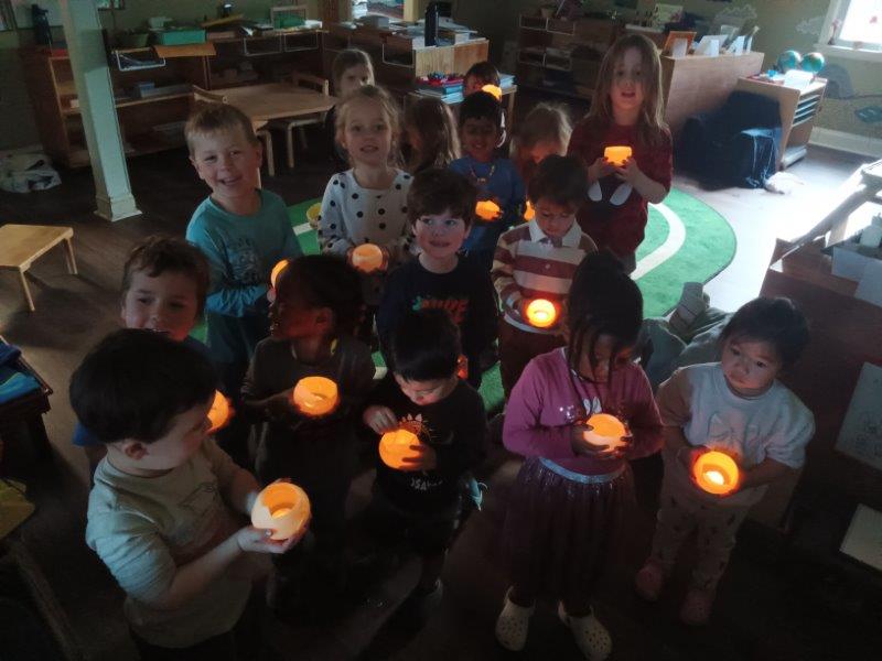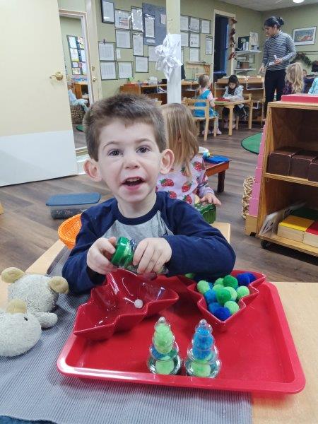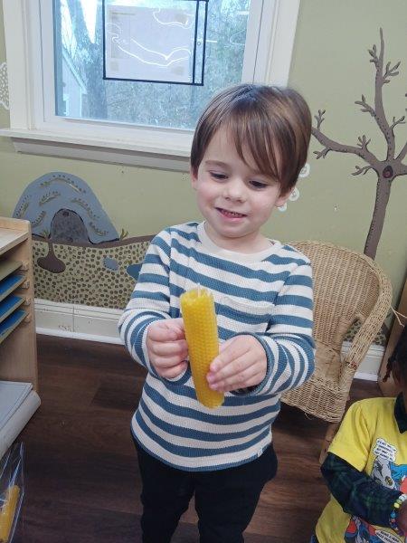 The holiday season at Immanuel Montessori School is a joyful time of tradition, creativity, and meaningful learning. Each year, our students explore our beloved schoolwide tradition of learning about bees, connecting nature to the holidays by making candles and luminaries from beeswax to take home and share with their families. As a community that celebrates diversity, our classrooms are thoughtfully prepared with lessons honoring both Christmas and Hannukah, filling the shelves with hands-on materials that invite curiosity and respect. The children joyfully made latkes, decorated pine cones with sparkling glitter, and created beautiful artwork inspired by bees and the holiday season. They also enjoyed collage trays filled with scraps of fabric, stencils, paper, and other materials, allowing them to design imaginative scenes about bees and the holidays. Sensory bins filled with black and yellow water pearls and tiny rubber bees invited careful concentration as children searched for and separated the bees from the pearls. To make their luminaries, the children dipped water-filled balloons into warm beeswax, and once the wax hardened, they gleefully popped the balloons, laughing as the water rushed out. When the luminaries were finished, the lights were turned off and the children carefully and proudly held their glowing creations, lighting their classrooms with a warm, magical glow. Through counting with dreidels and composing their own stories, the children experienced a rich blend of cultural celebration, sensory exploration, and joyful Montessori learning. We wish everyone a Joyful and Safe Holiday Season:). Happy Birthday, Maeve and Miles:).