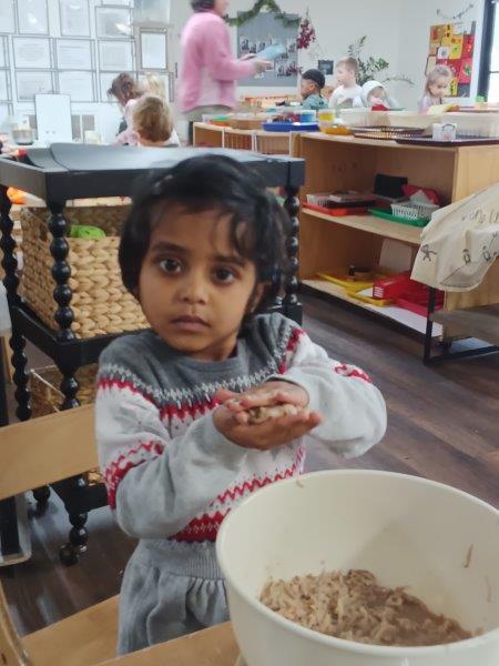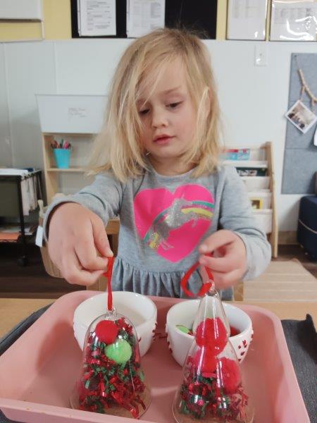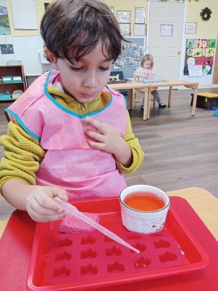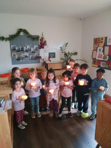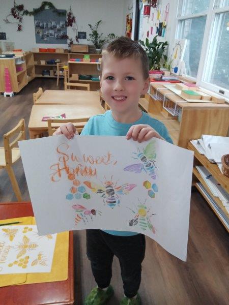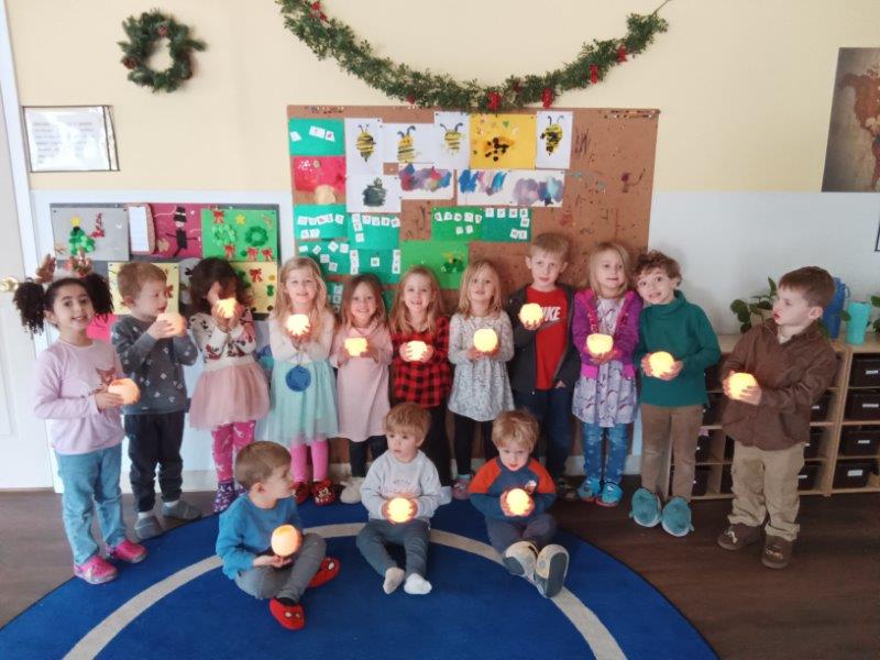 The holiday season at Immanuel Montessori School is a joyful time of tradition, creativity, and meaningful learning. Each year, our students explore our beloved schoolwide tradition of learning about bees, connecting nature to the holidays by making candles and luminaries from beeswax to take home and share with their families. As a community that celebrates diversity, our classrooms are thoughtfully prepared with lessons honoring both Christmas and Hanukah, filling the shelves with hands-on materials that invite curiosity and respect. The children joyfully made latkes, decorated pine cones with sparkling glitter, and created beautiful artwork inspired by bees and the holiday season. They also enjoyed collage trays filled with scraps of fabric, stencils, paper, and other materials, allowing them to design imaginative scenes about bees and the holidays. Sensory bins filled with black and yellow water pearls and tiny rubber bees invited careful concentration as children searched for and separated the bees from the pearls. To make their luminaries, the children dipped water-filled balloons into warm beeswax, and once the wax hardened, they gleefully popped the balloons, laughing as the water rushed out. When the luminaries were finished, the lights were turned off and the children carefully and proudly held their glowing creations, lighting their classrooms with a warm, magical glow. Through counting with dreidels and composing their own stories, the children experienced a rich blend of cultural celebration, sensory exploration, and joyful Montessori learning. We wish everyone a Joyful and Safe Holiday Season:). Happy Birthday, Hayden and Babette:).