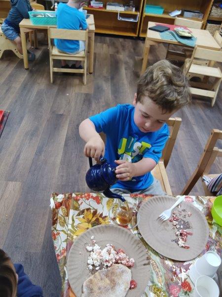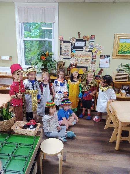 The children had an exciting and joyful time learning about Monarch butterflies and Egypt. In the two weeks leading up to the school’s annual Harvest Festival, the classrooms were filled with creativity and discovery. The children explored the wonders of ancient Egypt—listening to Egyptian music, admiring pictures of pharaohs, and dressing up like royalty, countryside villagers, and southern people. They crafted clay pyramids, created Egyptian landscapes with sand and animal figurines, and wrote their names in beautiful hieroglyphics on handmade bookmarks. They also enjoyed making Egyptian pancakes and bread served with feta cheese, tomatoes, and fresh mint from the school’s garden. Meanwhile, in their science studies, the children observed Monarch caterpillars feeding on milkweed leaves, forming chrysalises, and transforming into magnificent butterflies. They expressed their fascination through butterfly-themed artwork and a special snack made of mandarins, cream cheese, crackers, and blueberries. The unit culminated in a joyful Harvest Festival, where Egyptian dancers performed folkloric dances for families and children. Everyone delighted in the lively music, dancing, and delicious potluck meal—and the children’s smiles shone brightest as they joined the dancers on stage, celebrating the beauty of learning, culture, and community. The link below has pictures for our school’s website visitors to enjoy in these wonderful moments.