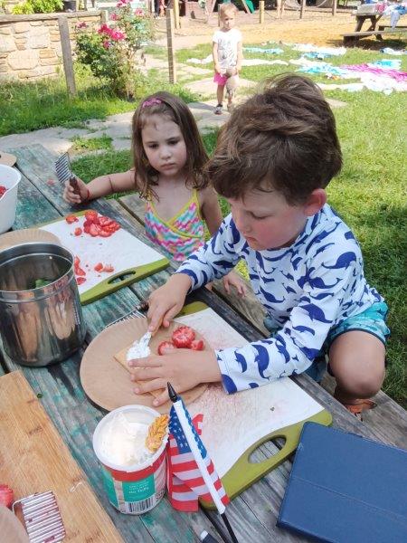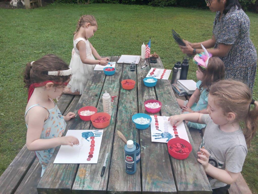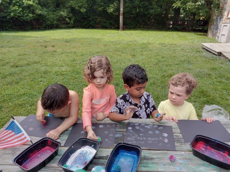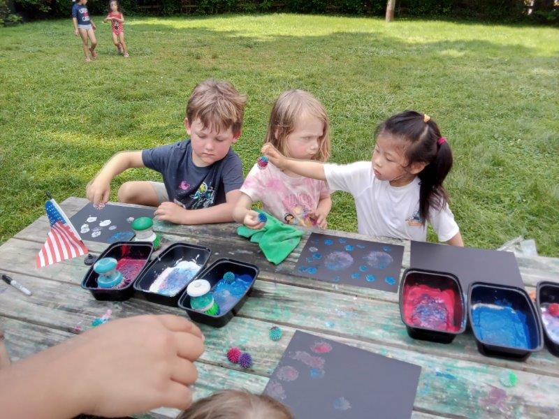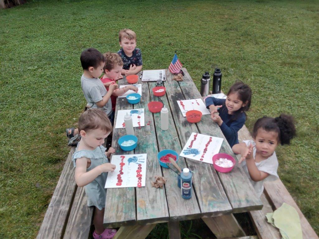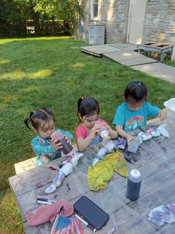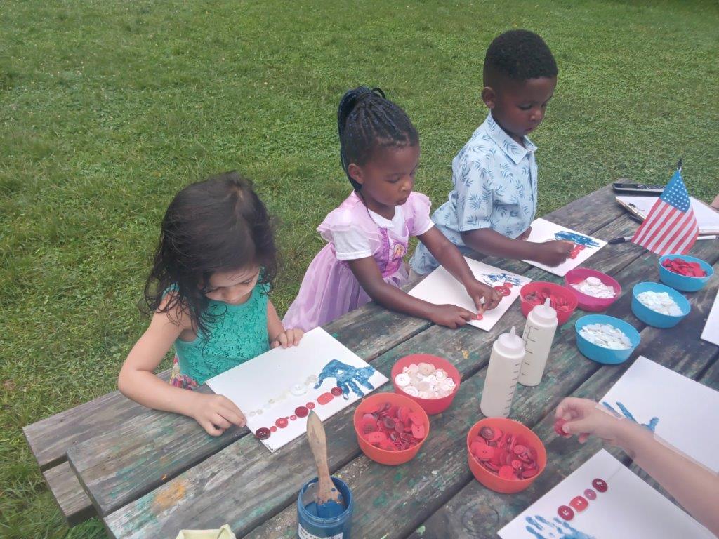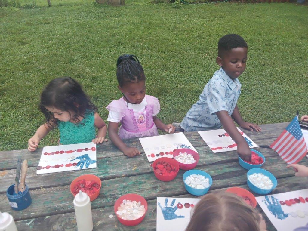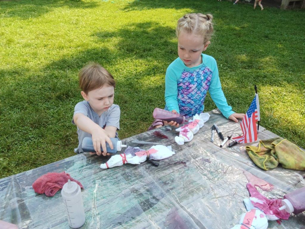 This summer at Immanuel Montessori School has been filled with fun, creativity, and celebration. The children enjoyed a variety of engaging activities, including soccer and other physical games that kept them active and energized. In honor of America’s birthday, the campers created both edible and non-edible American flags, tie-dyed white shirts with vibrant red and blue dyes, and crafted beautiful fireworks-themed art. The festivities concluded with a joyful cookout, where the children delighted in homemade burgers and hot dogs. As the delicious food cooked on the grill, the children relaxed in the sun, savoring the aroma and soaking up the warm, beautiful weather. A highlight of each day continues to be playing in the sprinkler, a favorite summer tradition that brings endless laughter and cooling refreshment. Happy Birthday Madelyn and Consilia:).