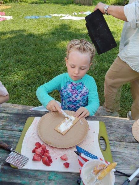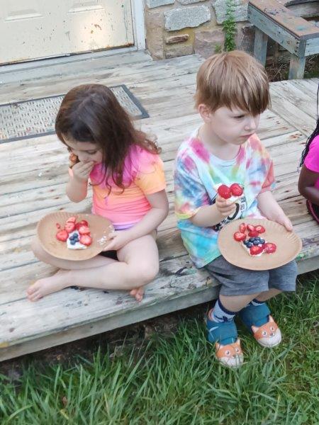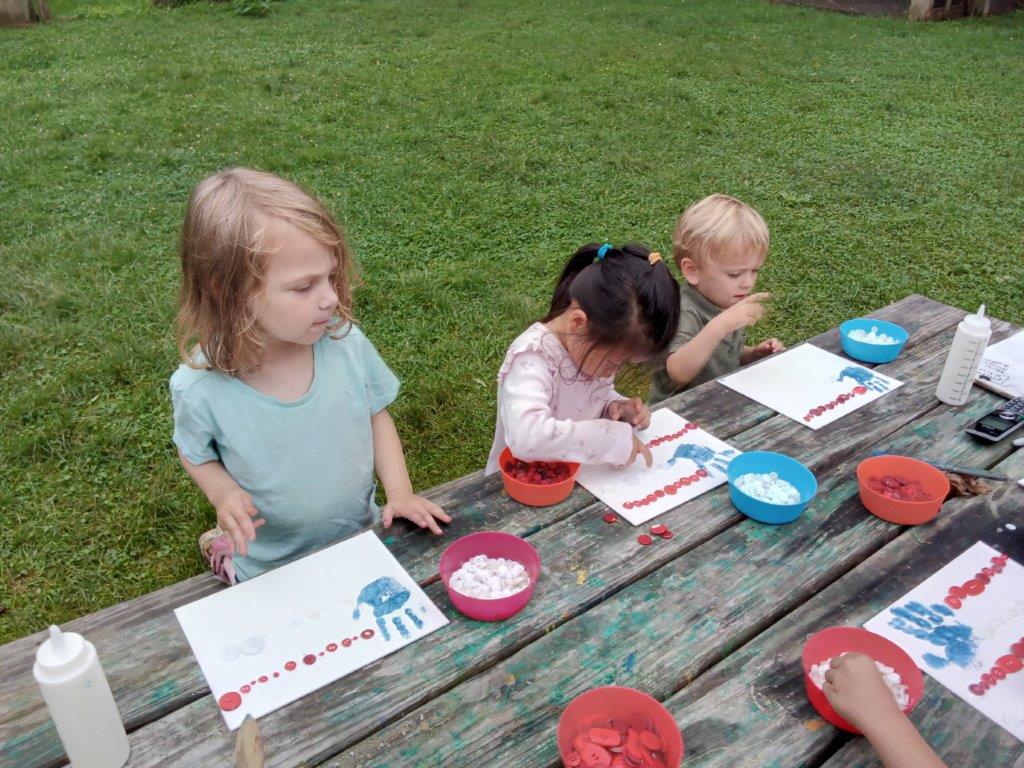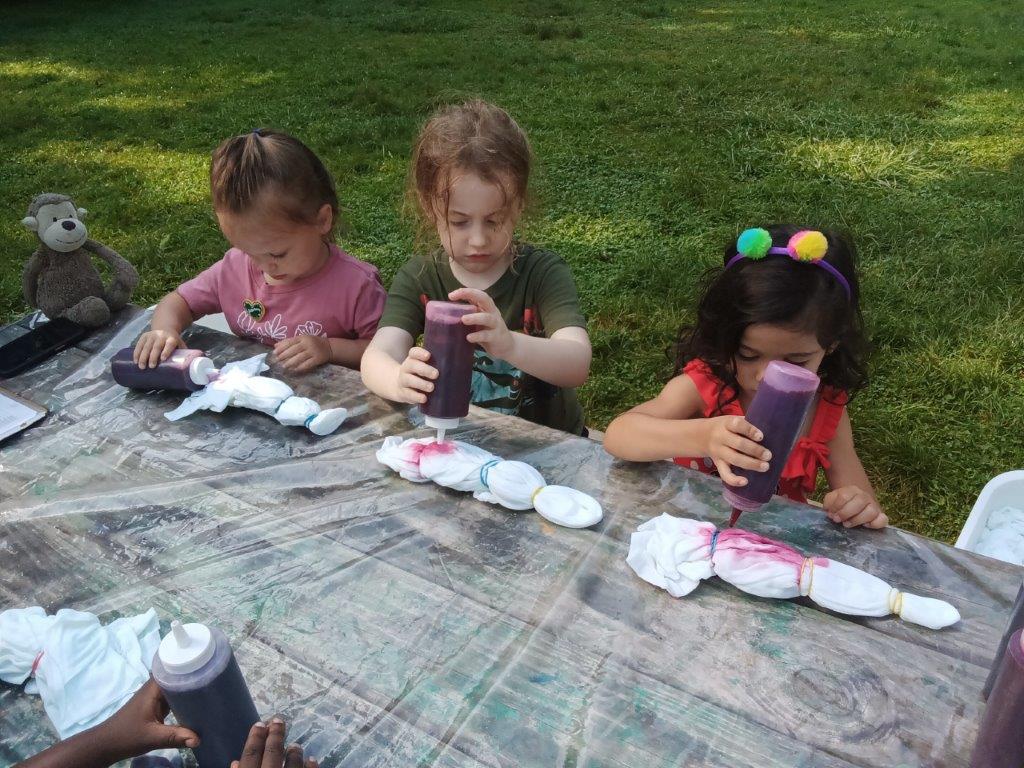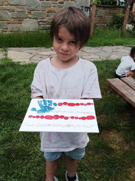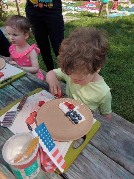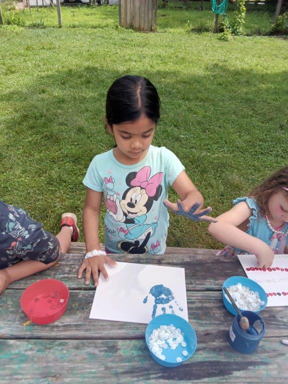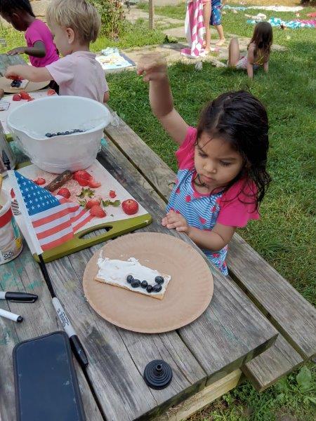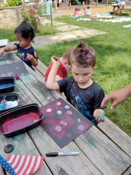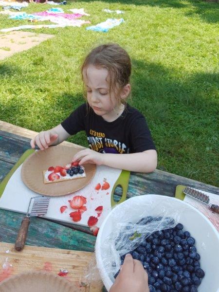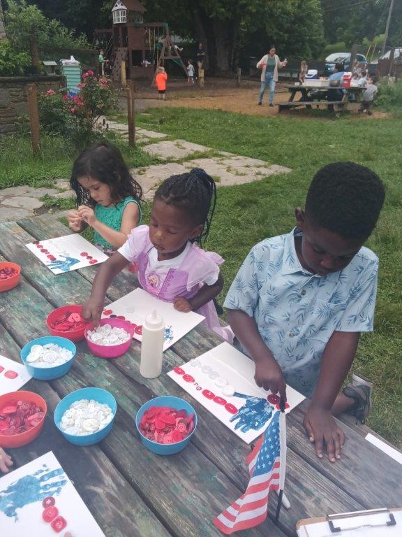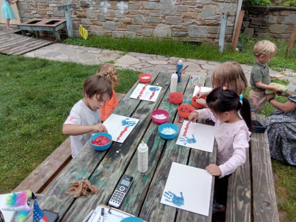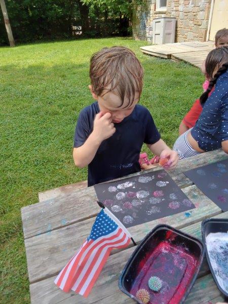 This summer at Immanuel Montessori School has been filled with fun, creativity, and celebration. The children enjoyed a variety of engaging activities, including soccer and other physical games that kept them active and energized. In honor of America’s birthday, the campers created both edible and non-edible American flags, tie-dyed white shirts with vibrant red and blue dyes, and crafted beautiful fireworks-themed art. The festivities concluded with a joyful cookout, where the children delighted in homemade burgers and hot dogs. As the delicious food cooked on the grill, the children relaxed in the sun, savoring the aroma and soaking up the warm, beautiful weather. A highlight of each day continues to be playing in the sprinkler, a favorite summer tradition that brings endless laughter and cooling refreshment. Happy Birthday Madelyn and Consilia:).
