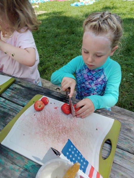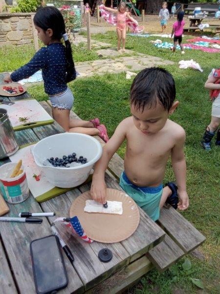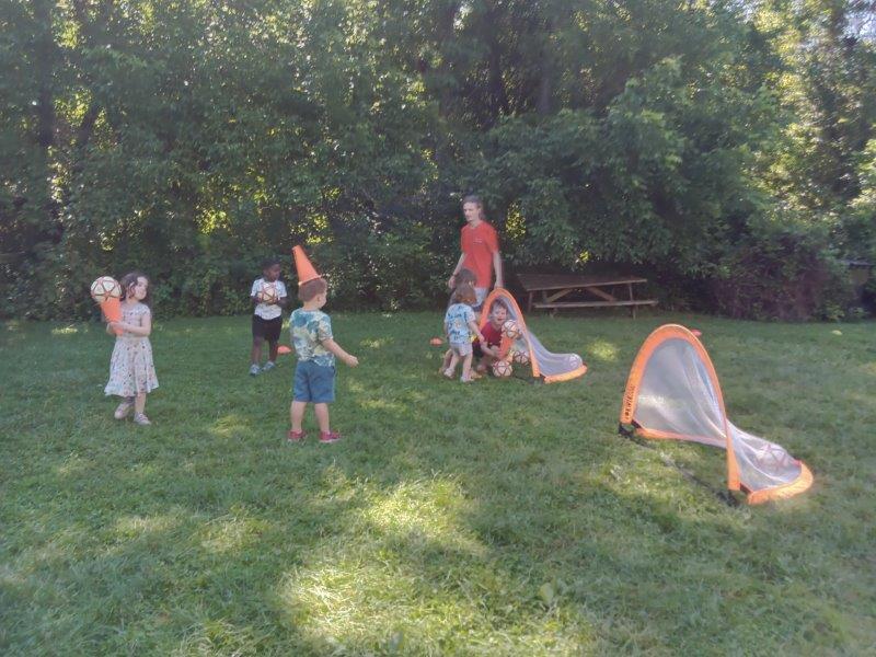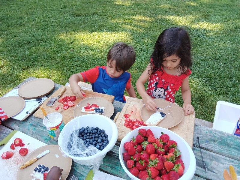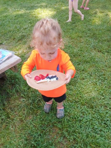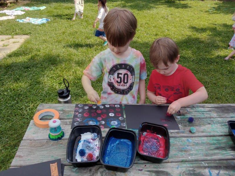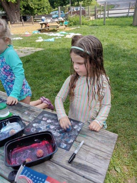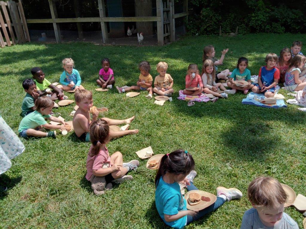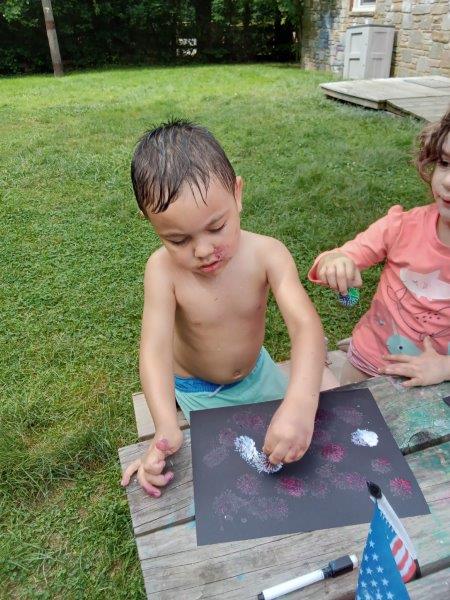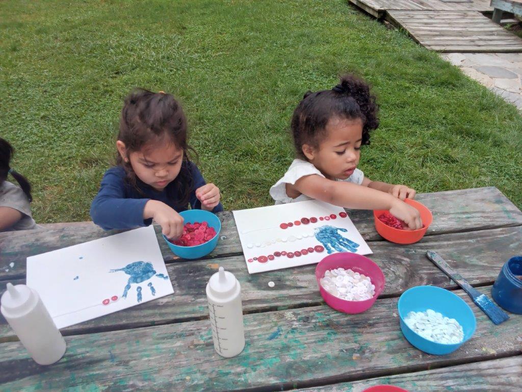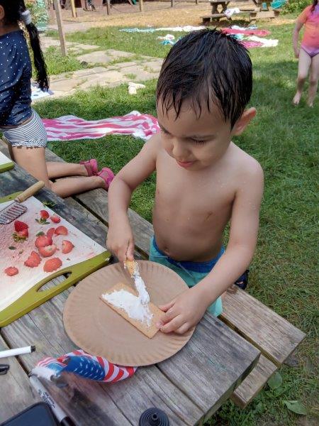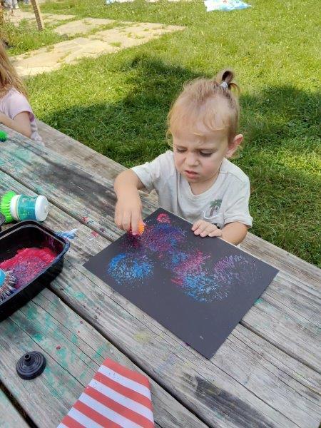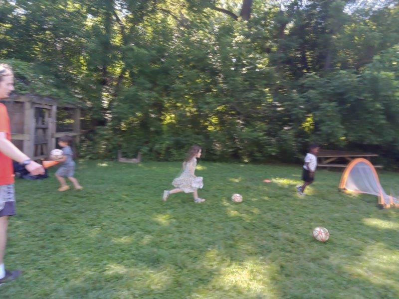This summer at Immanuel Montessori School has been filled with fun, creativity, and celebration. The children enjoyed a variety of engaging activities, including soccer and other physical games that kept them active and energized. In honor of America’s birthday, the campers created both edible and non-edible American flags, tie-dyed white shirts with vibrant red and blue dyes, and crafted beautiful fireworks-themed art. The festivities concluded with a joyful cookout, where the children delighted in homemade burgers and hot dogs. As the delicious food cooked on the grill, the children relaxed in the sun, savoring the aroma and soaking up the warm, beautiful weather. A highlight of each day continues to be playing in the sprinkler, a favorite summer tradition that brings endless laughter and cooling refreshment. Happy Birthday Madelyn and Consilia:).