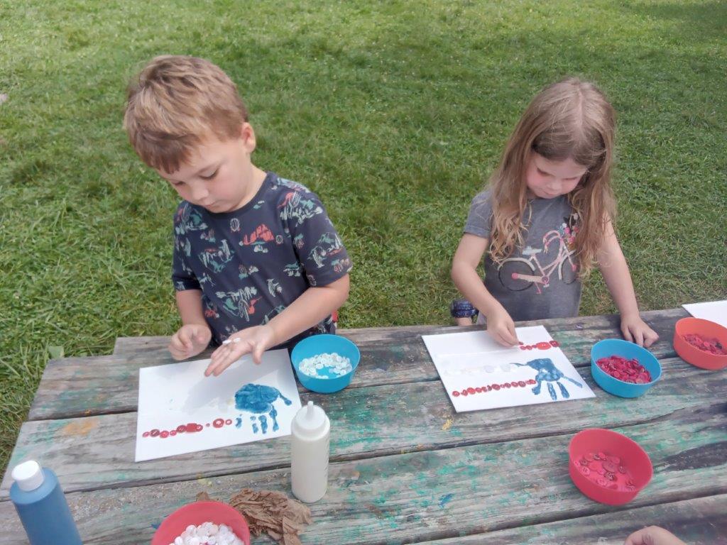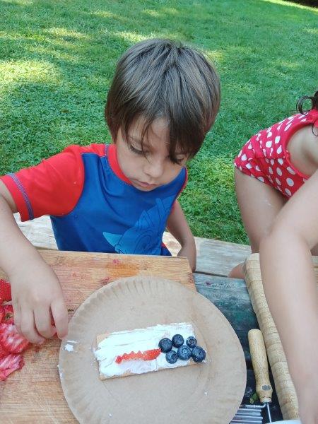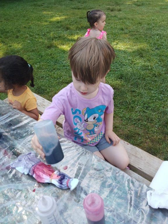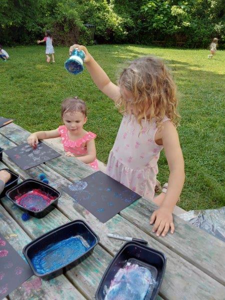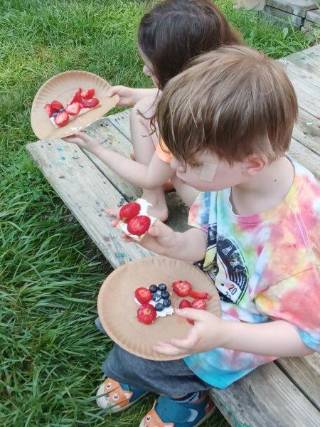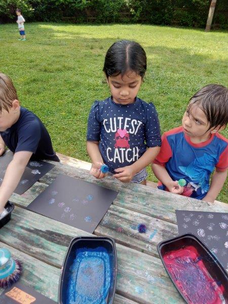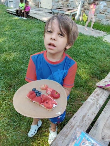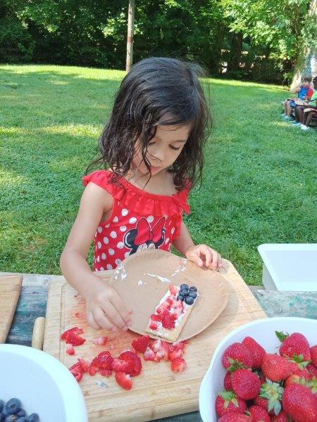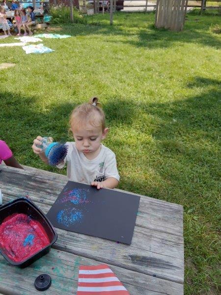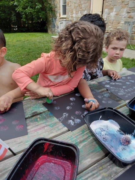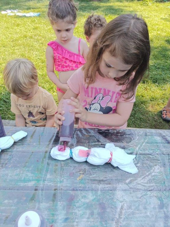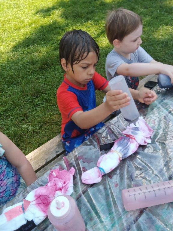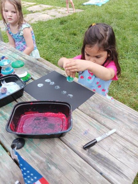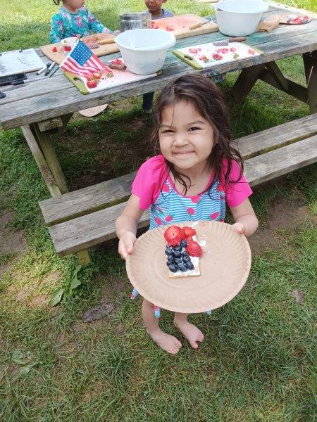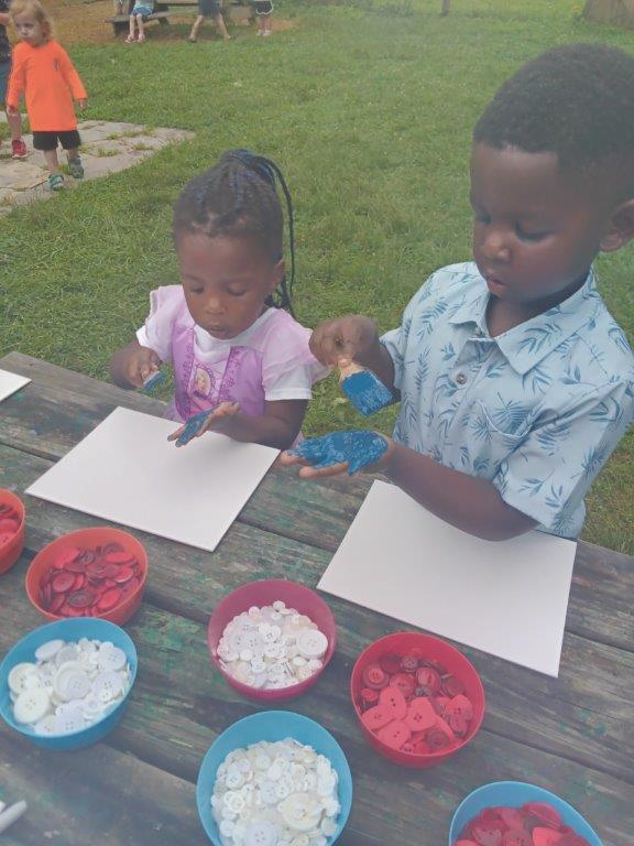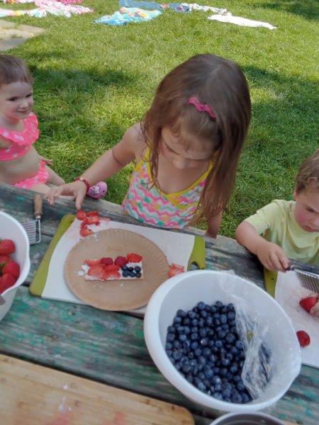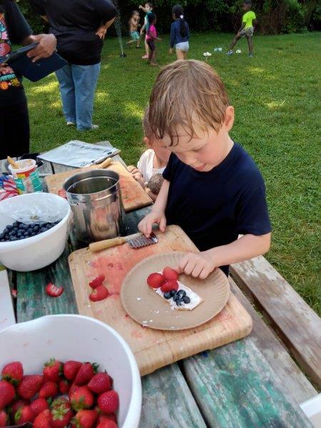 This summer at Immanuel Montessori School has been filled with fun, creativity, and celebration. The children enjoyed a variety of engaging activities, including soccer and other physical games that kept them active and energized. In honor of America’s birthday, the campers created both edible and non-edible American flags, tie-dyed white shirts with vibrant red and blue dyes, and crafted beautiful fireworks-themed art. The festivities concluded with a joyful cookout, where the children delighted in homemade burgers and hot dogs. As the delicious food cooked on the grill, the children relaxed in the sun, savoring the aroma and soaking up the warm, beautiful weather. A highlight of each day continues to be playing in the sprinkler, a favorite summer tradition that brings endless laughter and cooling refreshment. Happy Birthday Madelyn and Consilia:).