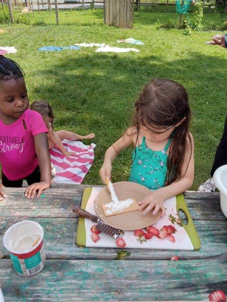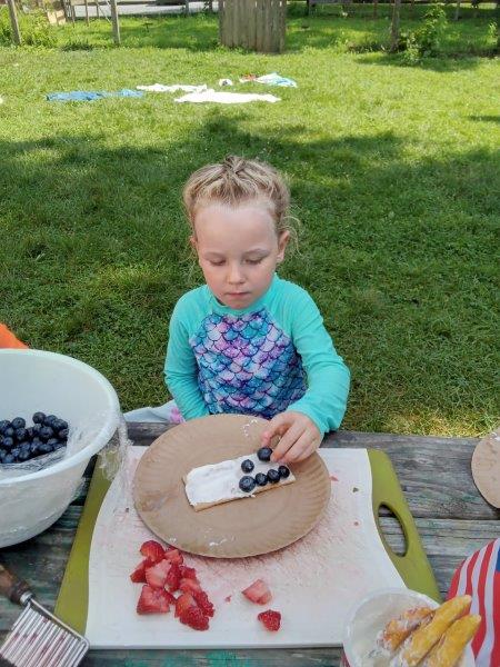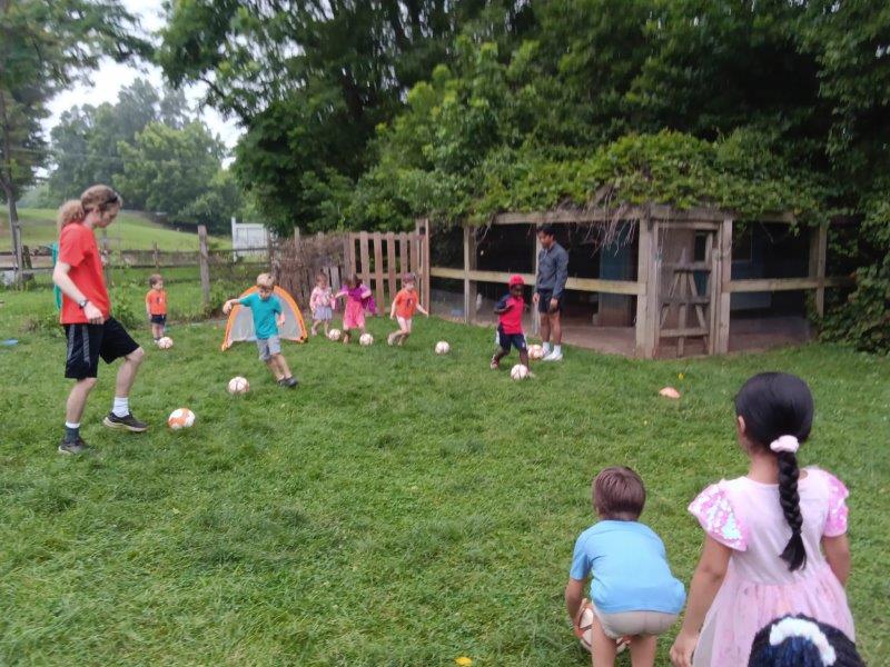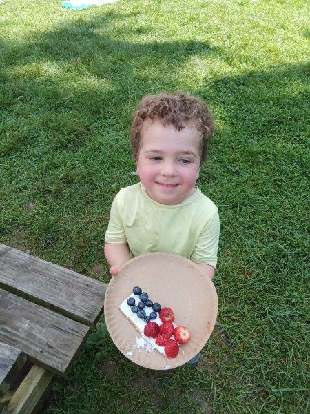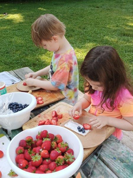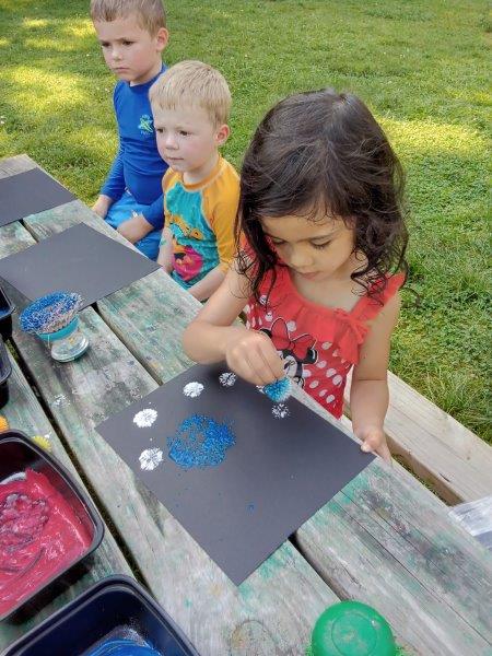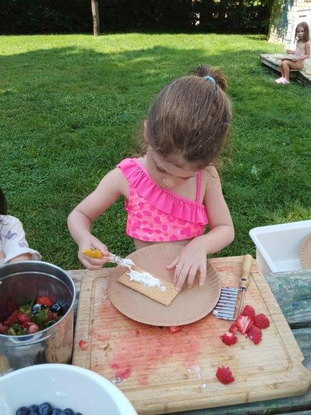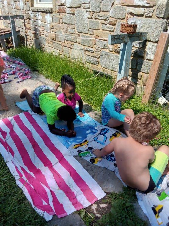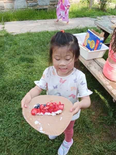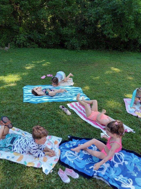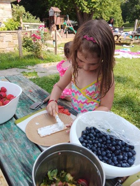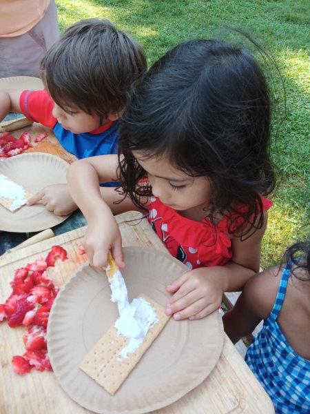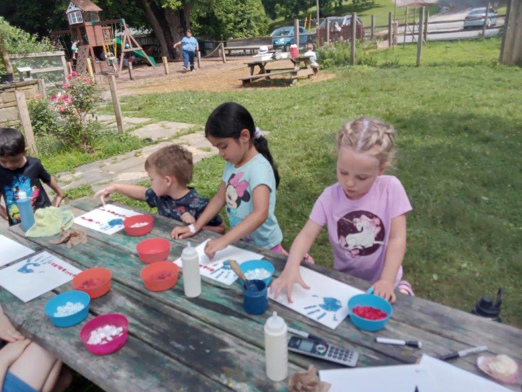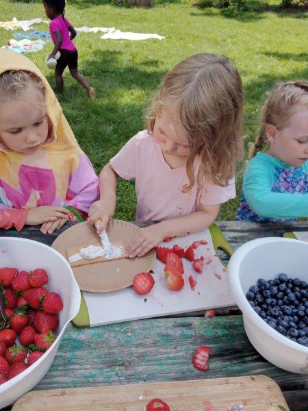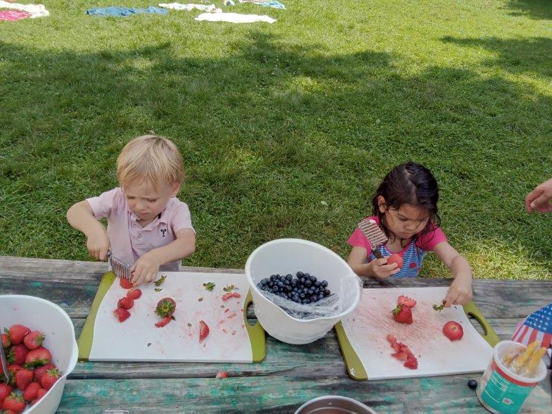 This summer at Immanuel Montessori School has been filled with fun, creativity, and celebration. The children enjoyed a variety of engaging activities, including soccer and other physical games that kept them active and energized. In honor of America’s birthday, the campers created both edible and non-edible American flags, tie-dyed white shirts with vibrant red and blue dyes, and crafted beautiful fireworks-themed art. The festivities concluded with a joyful cookout, where the children delighted in homemade burgers and hot dogs. As the delicious food cooked on the grill, the children relaxed in the sun, savoring the aroma and soaking up the warm, beautiful weather. A highlight of each day continues to be playing in the sprinkler, a favorite summer tradition that brings endless laughter and cooling refreshment. Happy Birthday Madelyn and Consilia:).