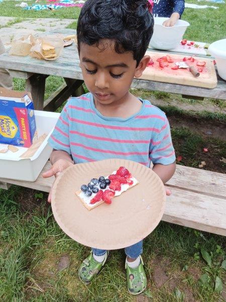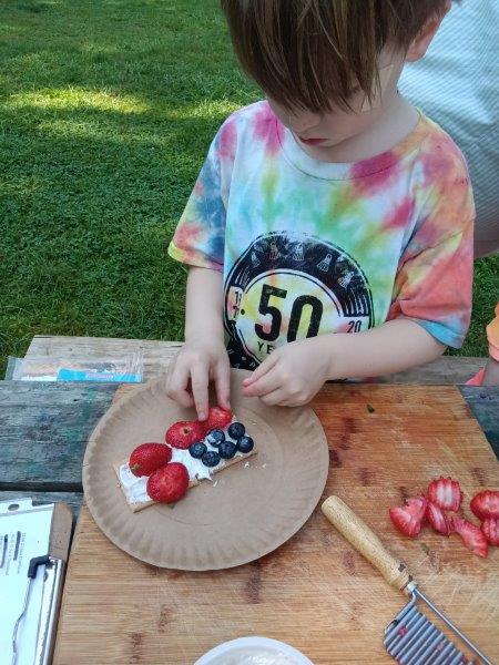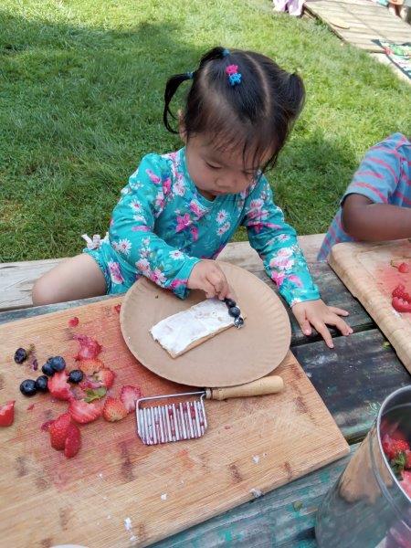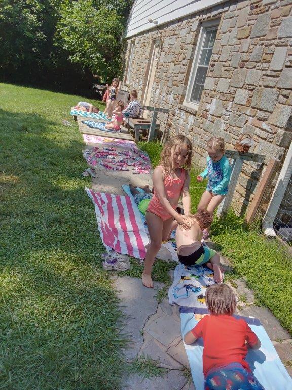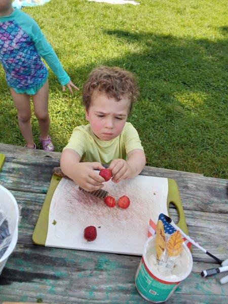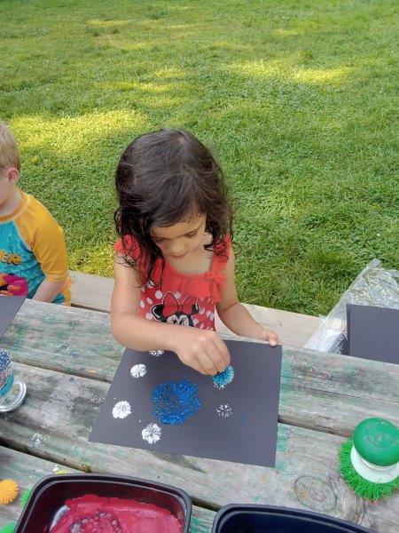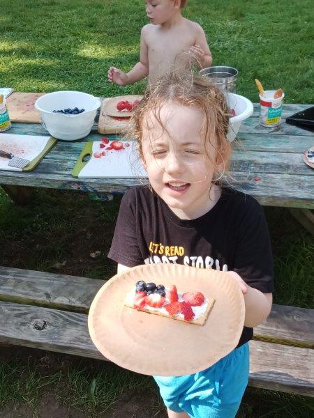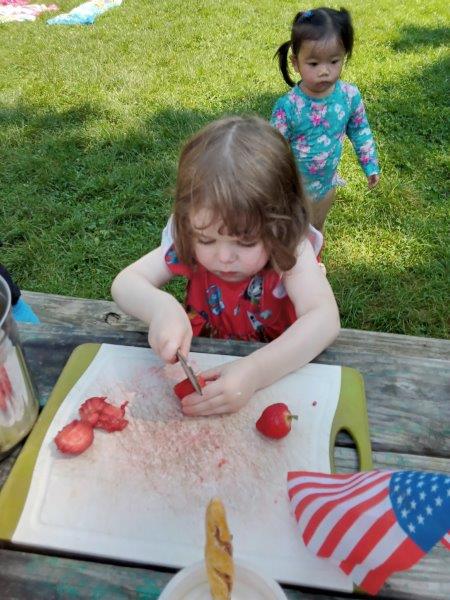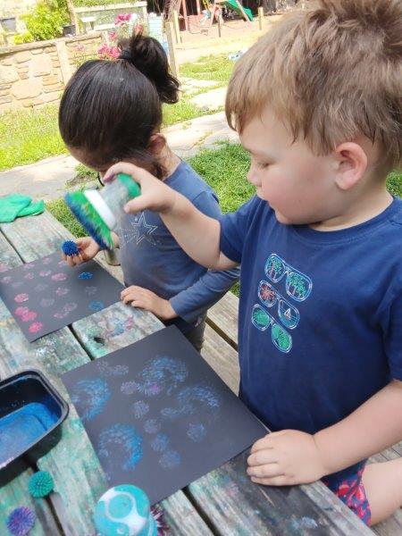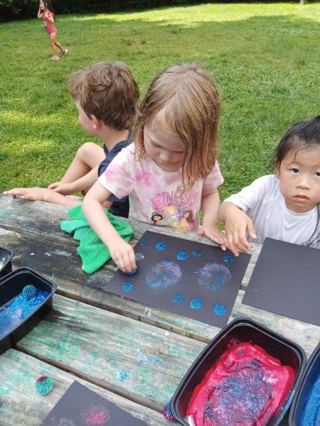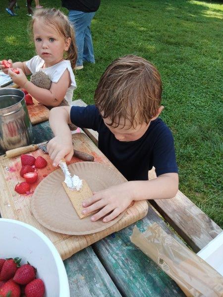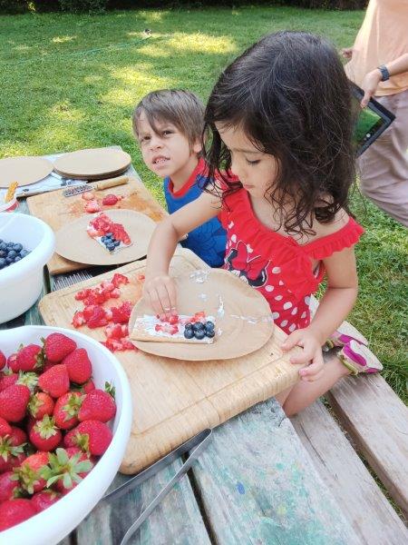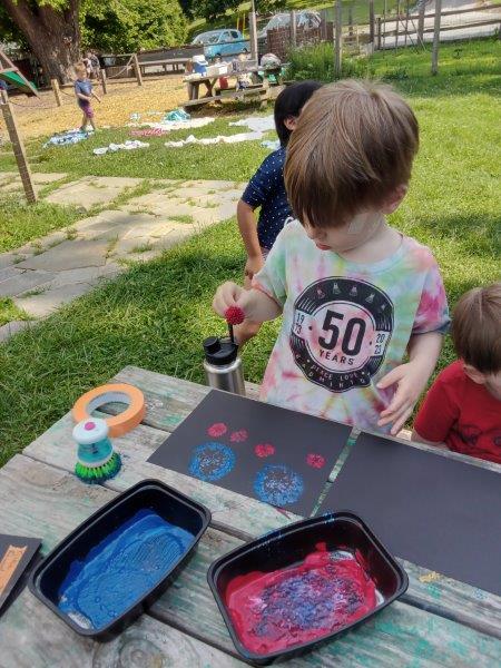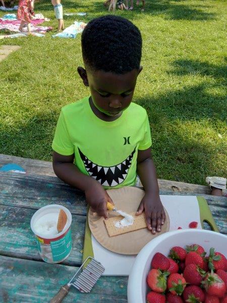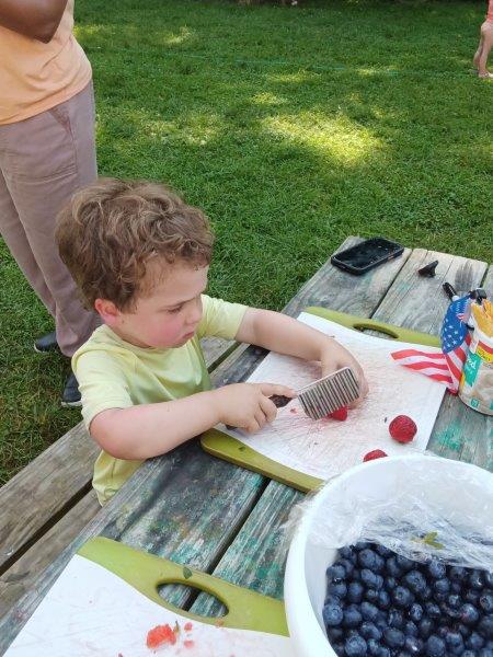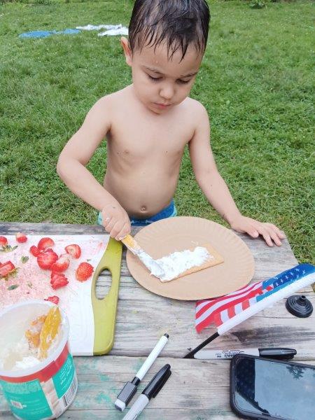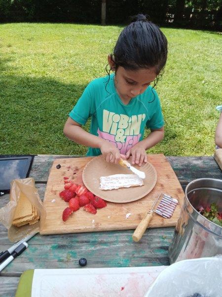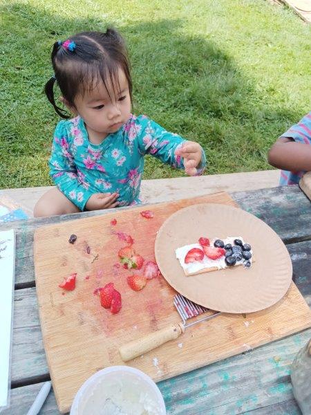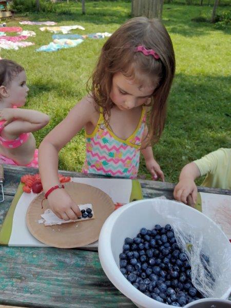 This summer at Immanuel Montessori School has been filled with fun, creativity, and celebration. The children enjoyed a variety of engaging activities, including soccer and other physical games that kept them active and energized. In honor of America’s birthday, the campers created both edible and non-edible American flags, tie-dyed white shirts with vibrant red and blue dyes, and crafted beautiful fireworks-themed art. The festivities concluded with a joyful cookout, where the children delighted in homemade burgers and hot dogs. As the delicious food cooked on the grill, the children relaxed in the sun, savoring the aroma and soaking up the warm, beautiful weather. A highlight of each day continues to be playing in the sprinkler, a favorite summer tradition that brings endless laughter and cooling refreshment. Happy Birthday Madelyn and Consilia:).