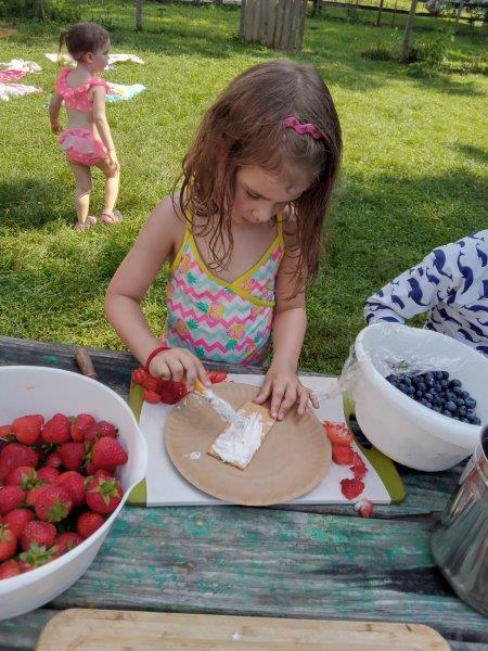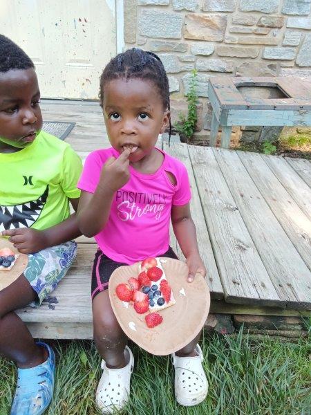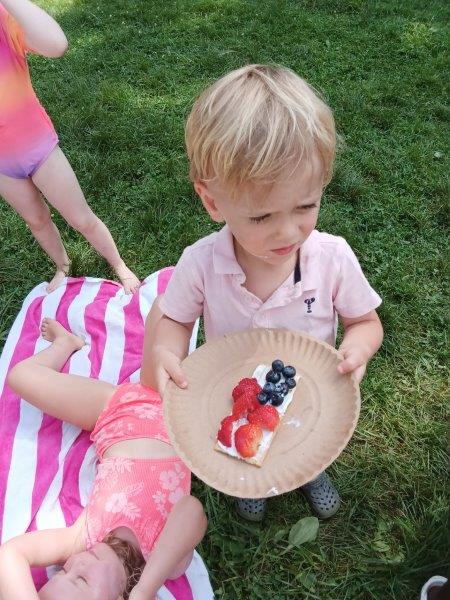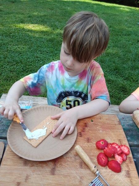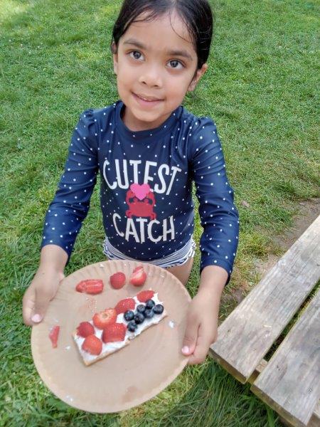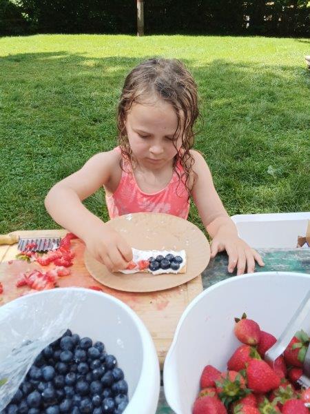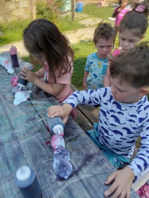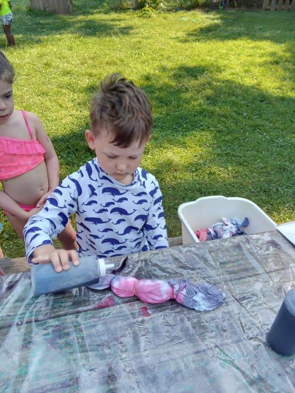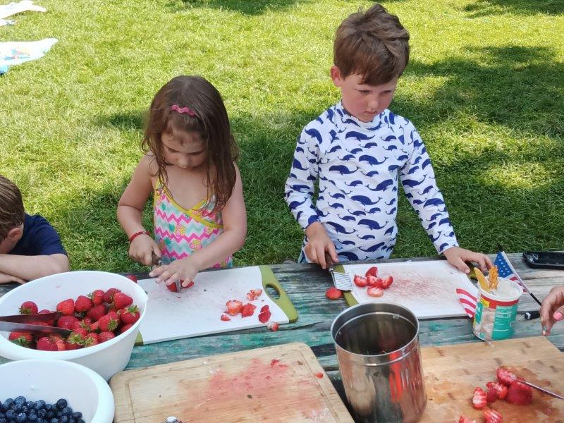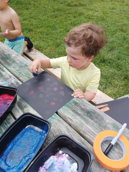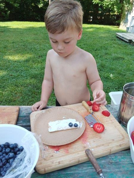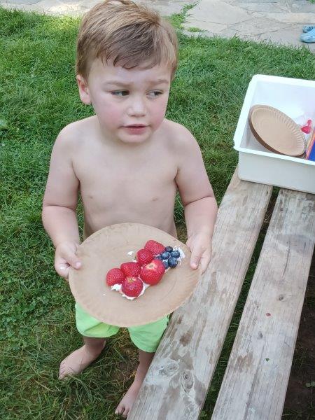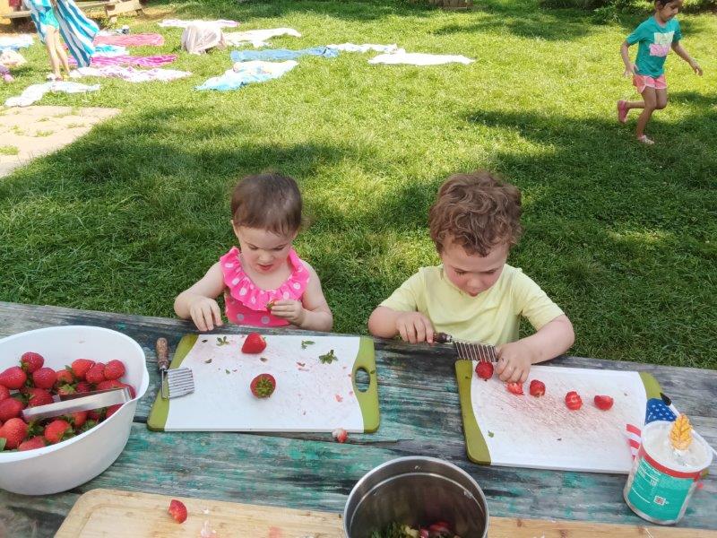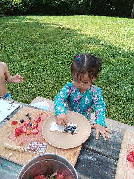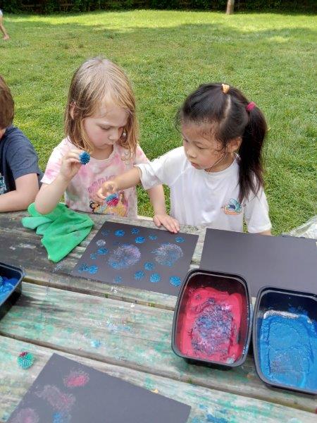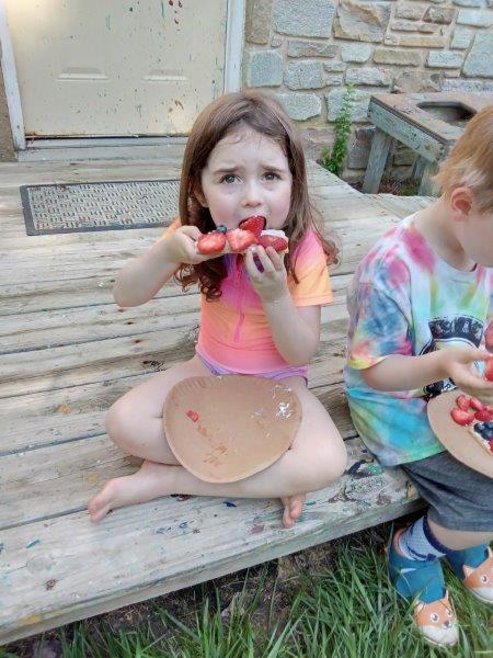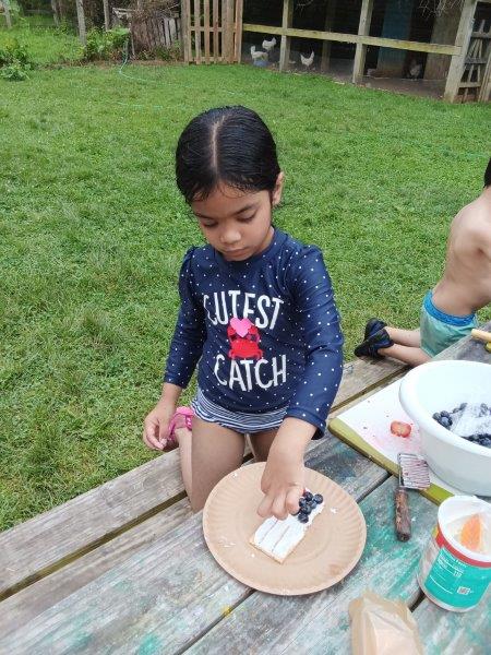 This summer at Immanuel Montessori School has been filled with fun, creativity, and celebration. The children enjoyed a variety of engaging activities, including soccer and other physical games that kept them active and energized. In honor of America’s birthday, the campers created both edible and non-edible American flags, tie-dyed white shirts with vibrant red and blue dyes, and crafted beautiful fireworks-themed art. The festivities concluded with a joyful cookout, where the children delighted in homemade burgers and hot dogs. As the delicious food cooked on the grill, the children relaxed in the sun, savoring the aroma and soaking up the warm, beautiful weather. A highlight of each day continues to be playing in the sprinkler, a favorite summer tradition that brings endless laughter and cooling refreshment. Happy Birthday Madelyn and Consilia:).