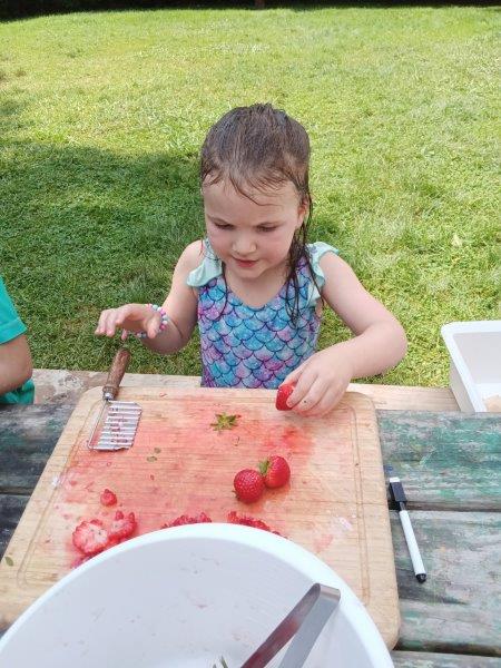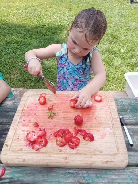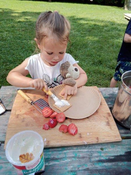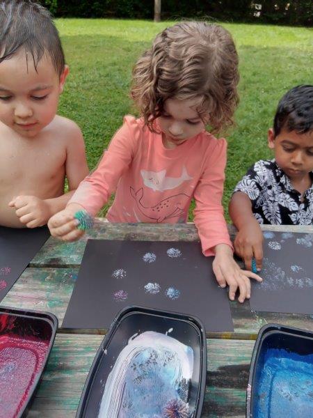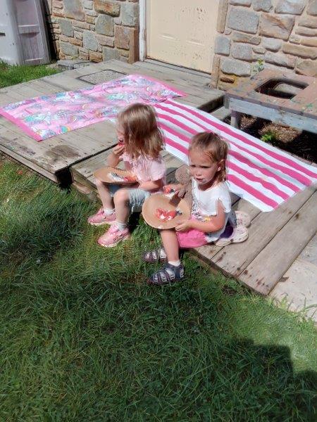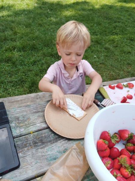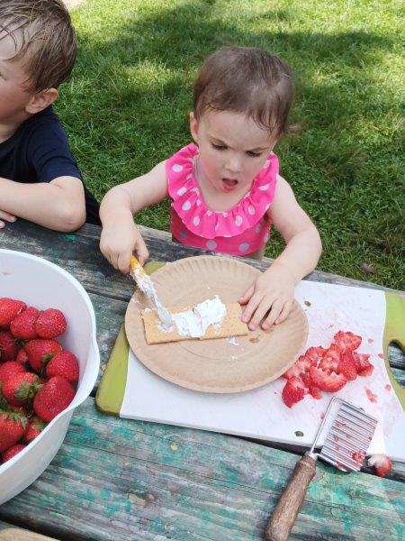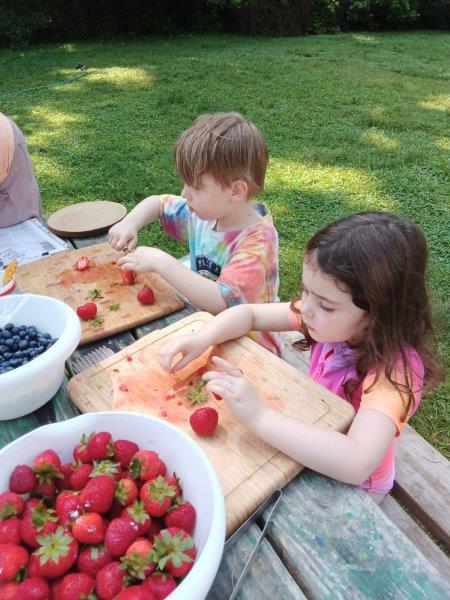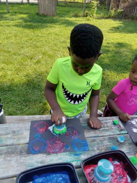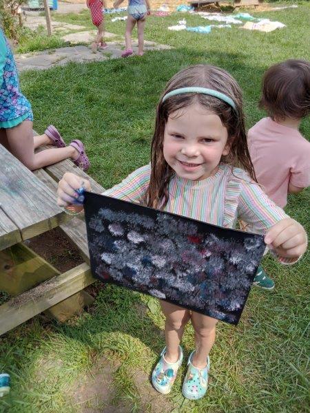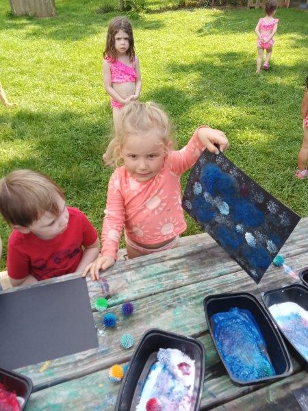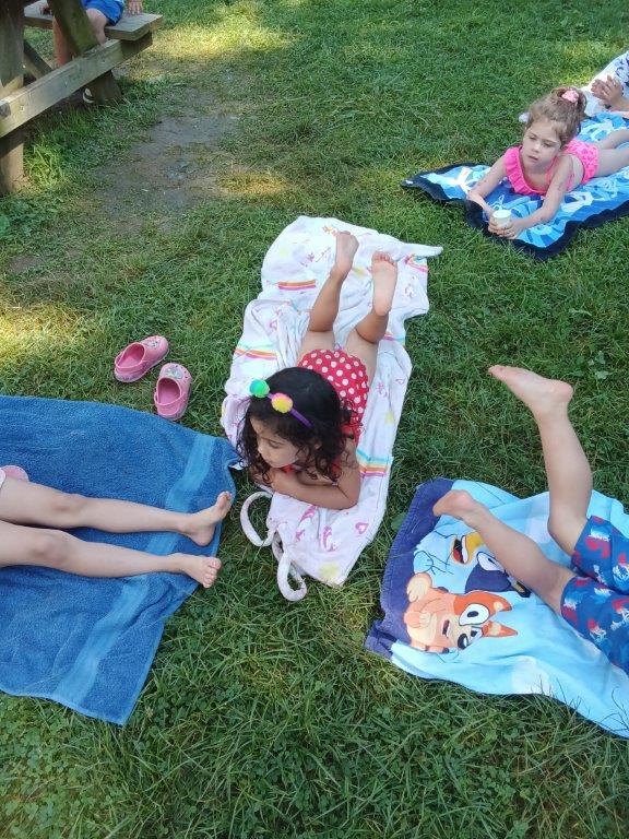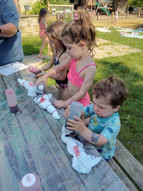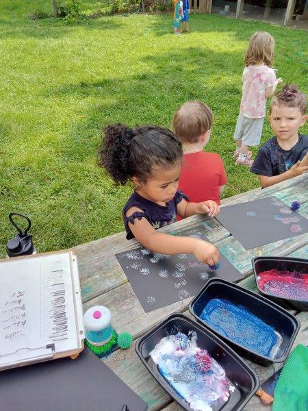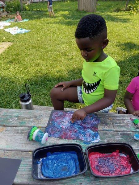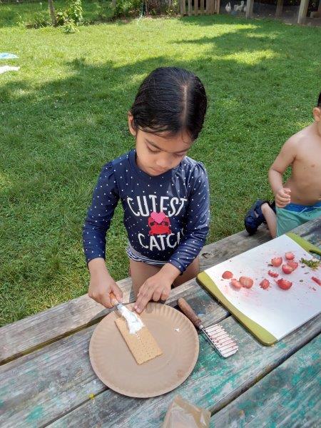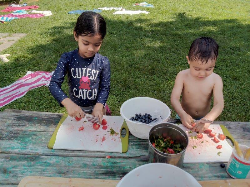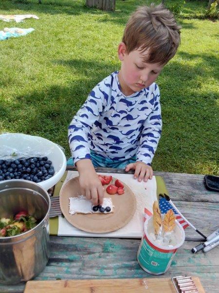 This summer at Immanuel Montessori School has been filled with fun, creativity, and celebration. The children enjoyed a variety of engaging activities, including soccer and other physical games that kept them active and energized. In honor of America’s birthday, the campers created both edible and non-edible American flags, tie-dyed white shirts with vibrant red and blue dyes, and crafted beautiful fireworks-themed art. The festivities concluded with a joyful cookout, where the children delighted in homemade burgers and hot dogs. As the delicious food cooked on the grill, the children relaxed in the sun, savoring the aroma and soaking up the warm, beautiful weather. A highlight of each day continues to be playing in the sprinkler, a favorite summer tradition that brings endless laughter and cooling refreshment. Happy Birthday Madelyn and Consilia:).