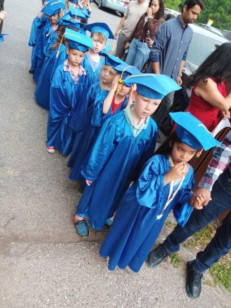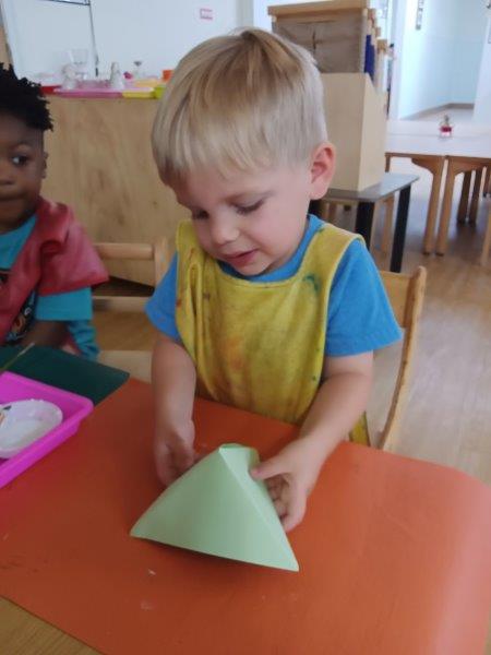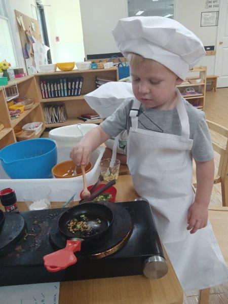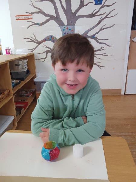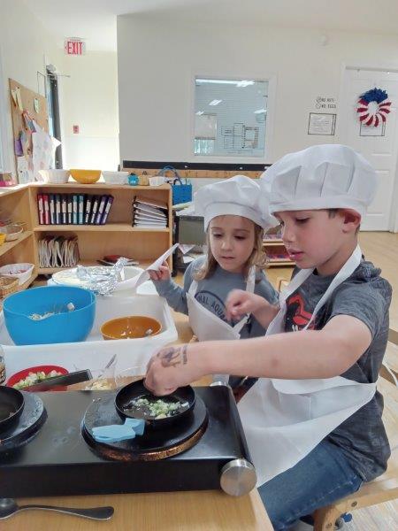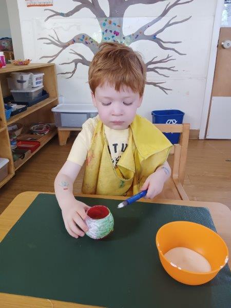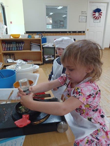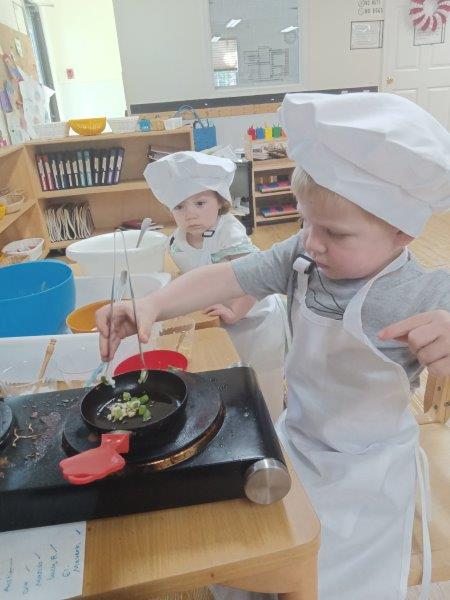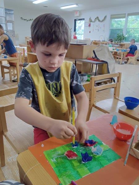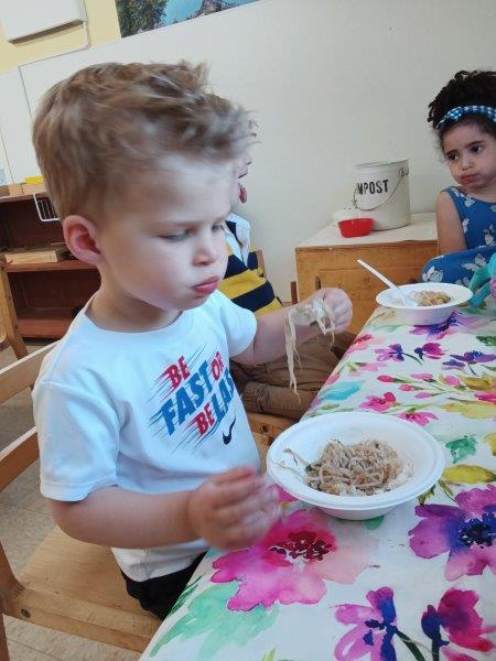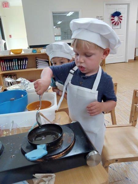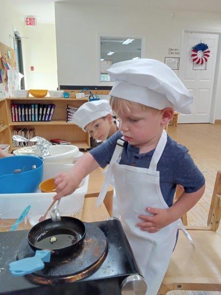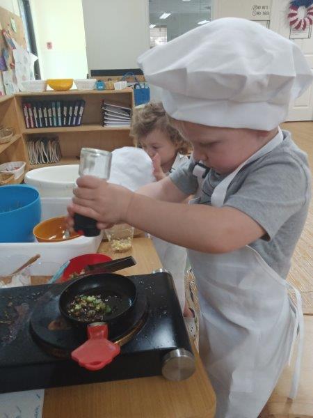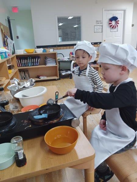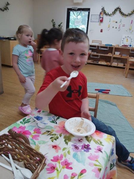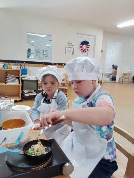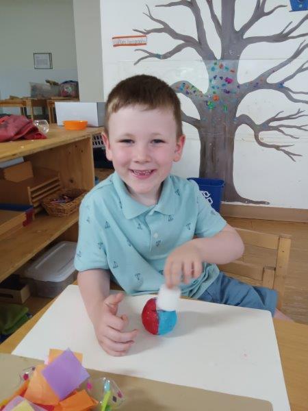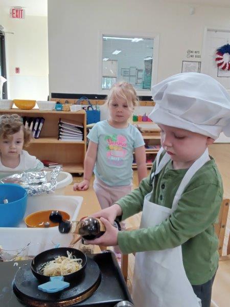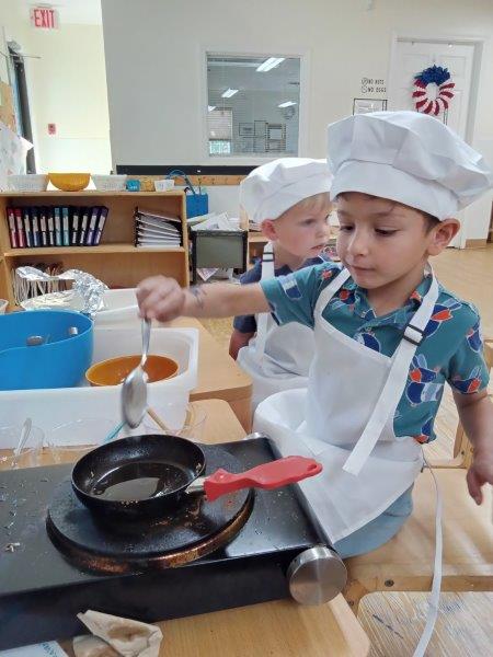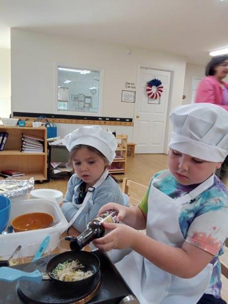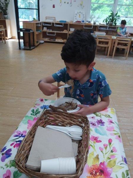 Over the past few weeks, the children explored a variety of engaging and enriching lessons to end the school year. They learned about the famous artist Claude Monet, carefully studying his beautiful impressionist works and matching his paintings before creating their own artwork inspired by Poppy Fields and Water Lilies. As part of their science studies, the children learned about the life cycle of beans and observed lima beans sprouting, bringing science to life through hands-on observation. They even dressed up as little chefs, frying their own bean sprouts and enjoying them with rice—a fun way to connect food, science, and independence. Our classroom shelves were filled with exciting new art lessons, where children joyfully made colorful paper chains and constructed vibrant paper pyramids. The school year ended with a heartfelt celebration as we honored our graduates in a cheerful ceremony. Wearing caps and gowns, the children proudly walked down the aisle while parents and teachers clapped and cheered. It has been a wonderful year, full of creativity, discovery, and growth. Happy Birthday to Carter and Parker:). Thank you, Owen’s dad, for coming to our school to talk to us about being a police officer:).