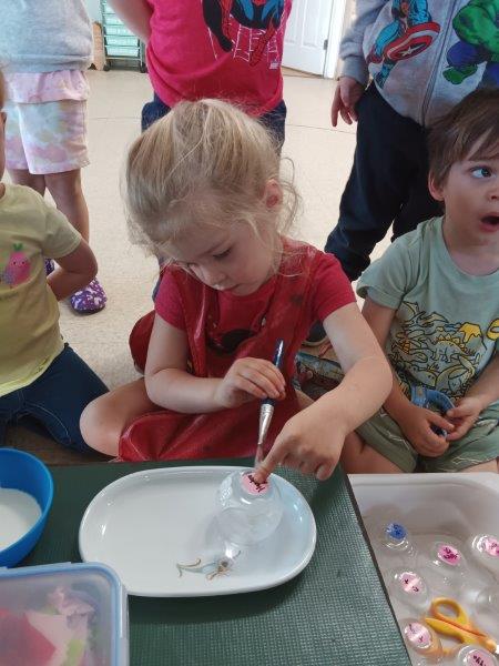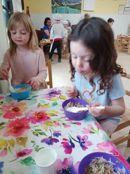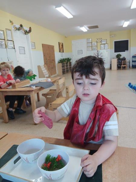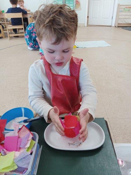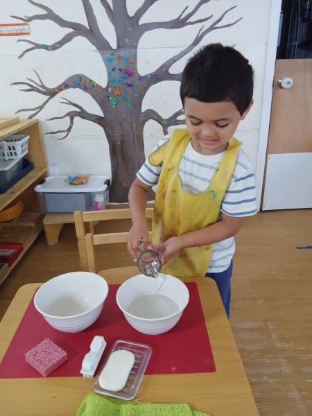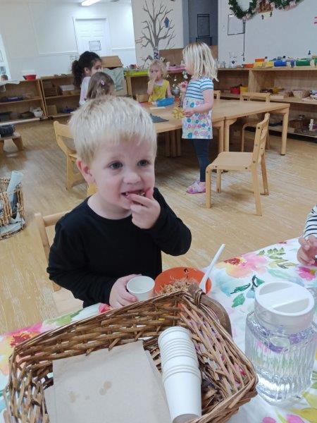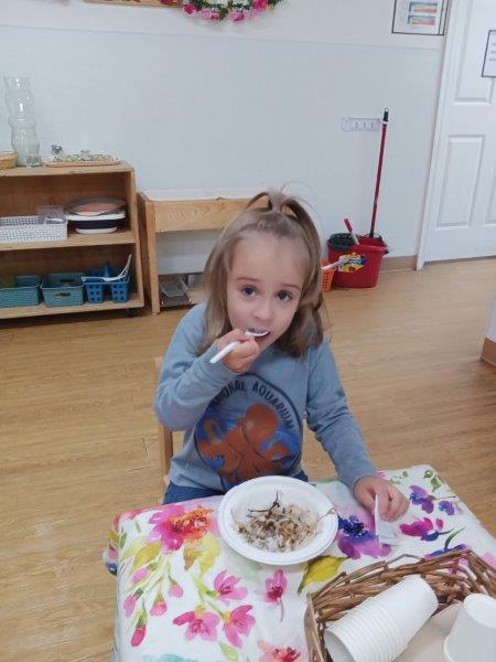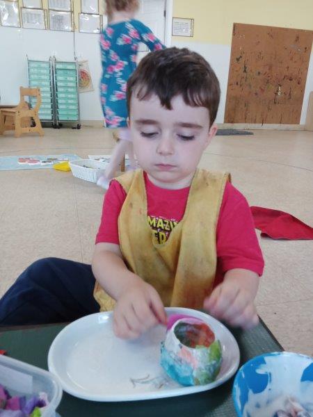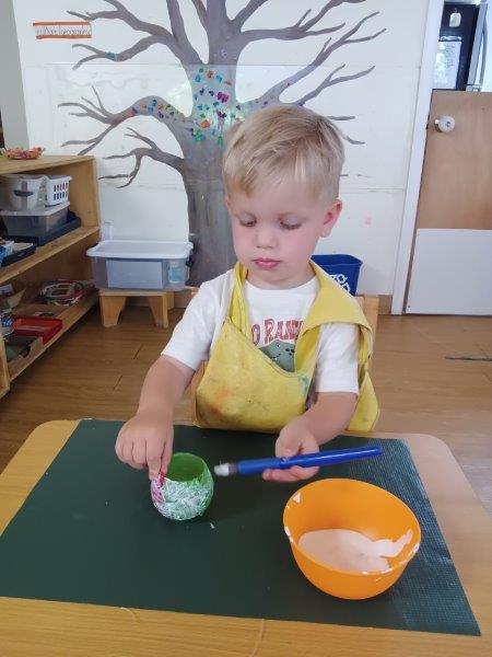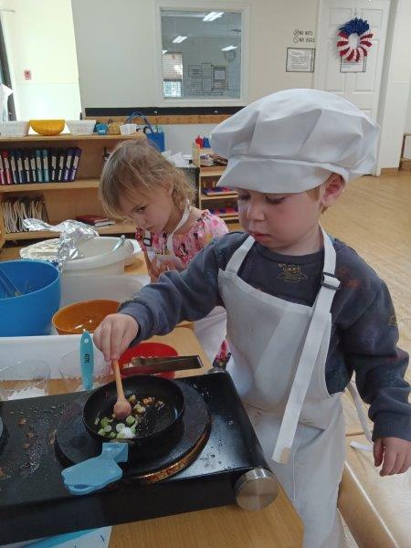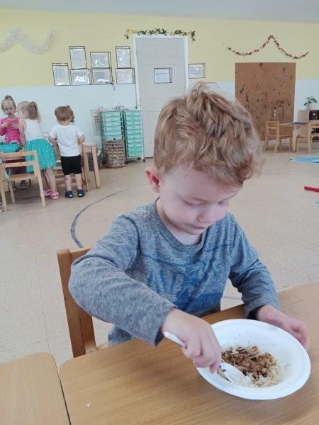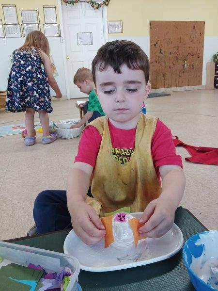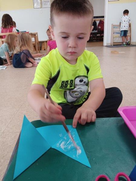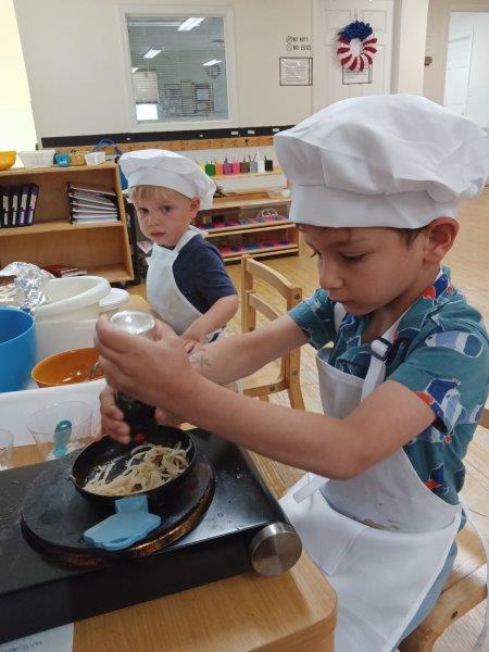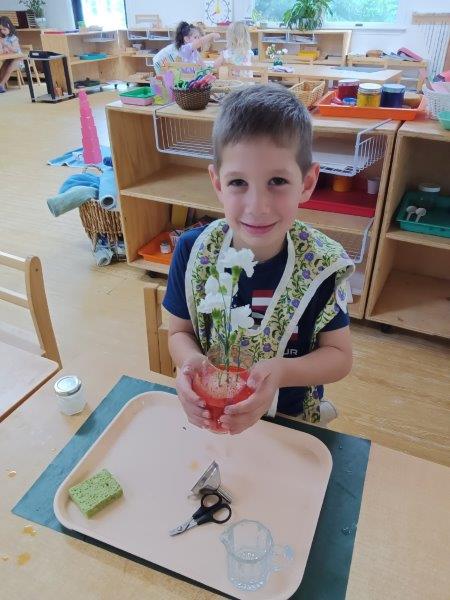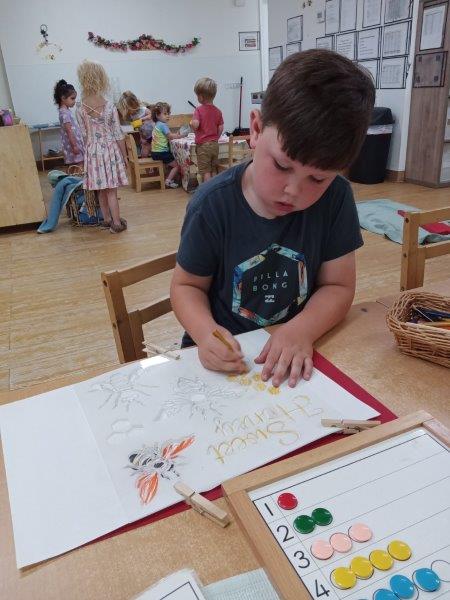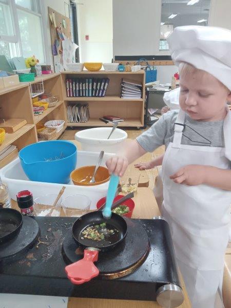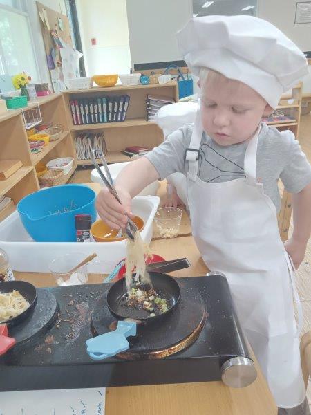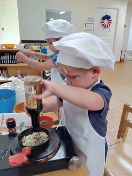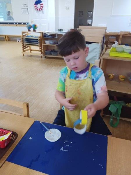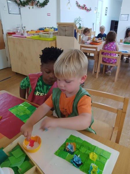 Over the past few weeks, the children explored a variety of engaging and enriching lessons to end the school year. They learned about the famous artist Claude Monet, carefully studying his beautiful impressionist works and matching his paintings before creating their own artwork inspired by Poppy Fields and Water Lilies. As part of their science studies, the children learned about the life cycle of beans and observed lima beans sprouting, bringing science to life through hands-on observation. They even dressed up as little chefs, frying their own bean sprouts and enjoying them with rice—a fun way to connect food, science, and independence. Our classroom shelves were filled with exciting new art lessons, where children joyfully made colorful paper chains and constructed vibrant paper pyramids. The school year ended with a heartfelt celebration as we honored our graduates in a cheerful ceremony. Wearing caps and gowns, the children proudly walked down the aisle while parents and teachers clapped and cheered. It has been a wonderful year, full of creativity, discovery, and growth. Happy Birthday to Carter and Parker:). Thank you, Owen’s dad, for coming to our school to talk to us about being a police officer:).